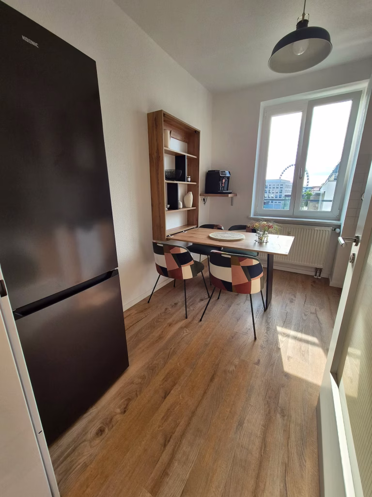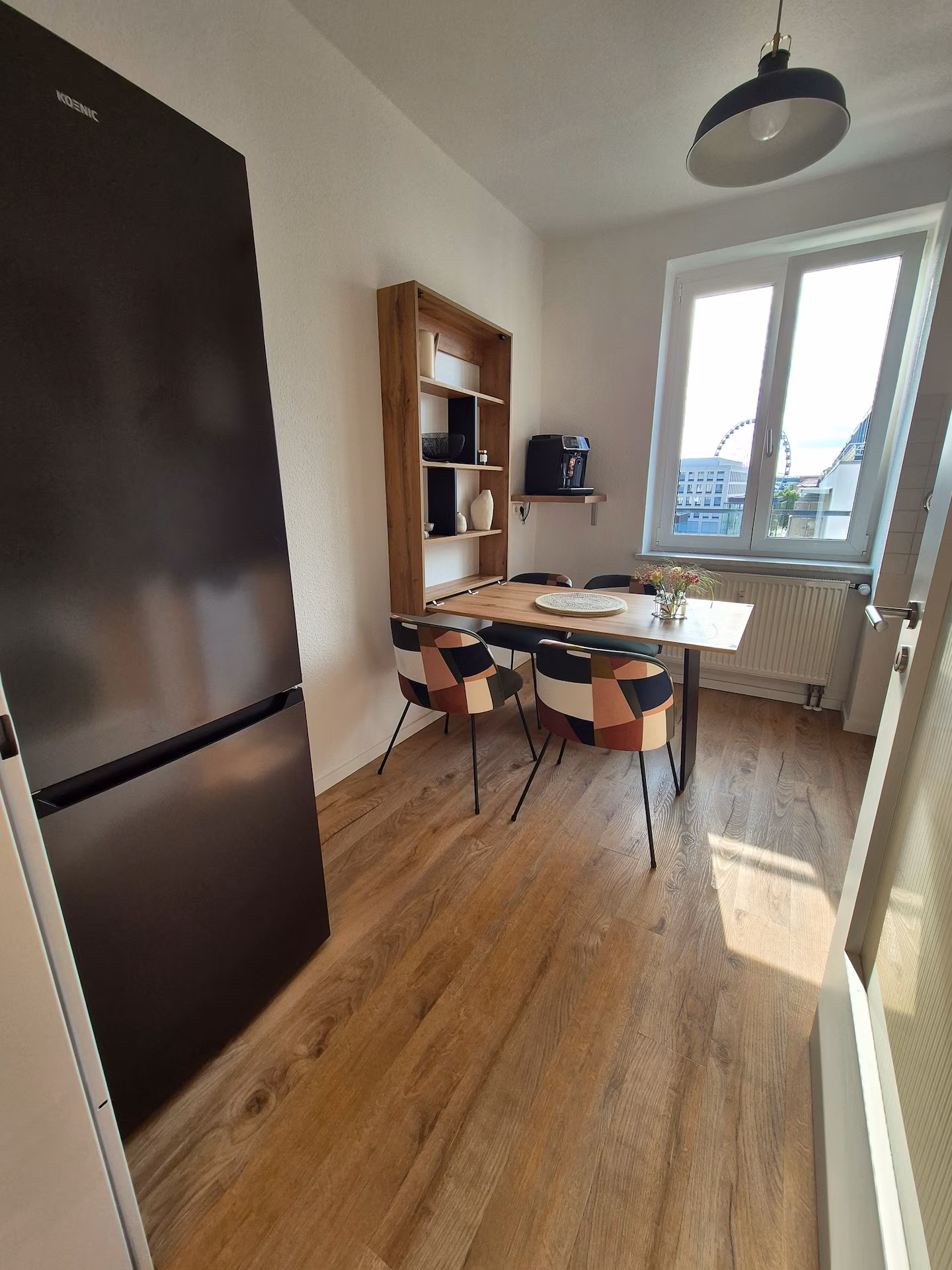 Unsere neu sanierte Wohnung liegt mitten in der historischen Altstadt, direkt neben dem Kulturpalast. Von hier aus genießt Du einen beeindruckenden Blick auf die Frauenkirche. Die Lage ist perfekt für Entdecker: Die Semperoper und der Zwinger sind nur einen kurzen Spaziergang entfernt, ebenso wie erstklassige Geschäfte und Restaurants. Die moderne Ausstattung und das historische Ambiente bieten eine einzigartige Mischung aus Komfort und Charme.